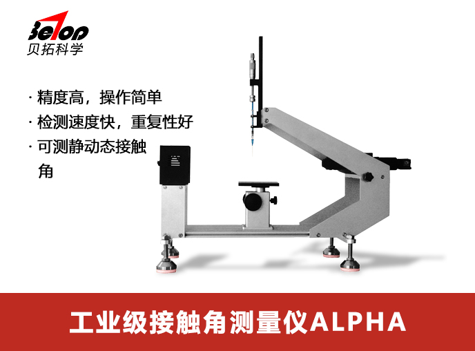 接觸角作為研究固體材料表面能及表面潤(rùn)濕性能的重要參數(shù)之一,普遍應(yīng)用于現(xiàn)代工業(yè)的許多領(lǐng)域,例如,醫(yī)藥、半導(dǎo)體、材料防護(hù)、生命科學(xué)等。貝拓科學(xué)研發(fā)的國(guó)產(chǎn)接觸角測(cè)量?jī)xAlpha,專門(mén)為工業(yè)客戶設(shè)計(jì),外形簡(jiǎn)約大氣、操作簡(jiǎn)單,數(shù)據(jù)精準(zhǔn)重復(fù)性,是工業(yè)客戶的理想選擇!