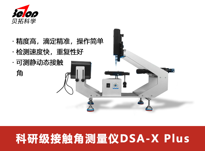 專家型接觸角測(cè)量?jī)x DSA-X Plus由貝拓科學(xué)自主研發(fā)設(shè)計(jì)生產(chǎn),配置先進(jìn)的高分辨高速工業(yè)相機(jī)搭配LED冷光源,獲得高清圖像并通過(guò)全新優(yōu)化的軟件進(jìn)行計(jì)算擬合獲得準(zhǔn)確的測(cè)試數(shù)據(jù)。儀器機(jī)構(gòu)結(jié)合了人體工程學(xué),提供人性化的自動(dòng)化進(jìn)樣調(diào)節(jié)、樣品臺(tái)調(diào)節(jié)、光學(xué)系統(tǒng)調(diào)節(jié)等,使測(cè)試變得精確而快速高效。